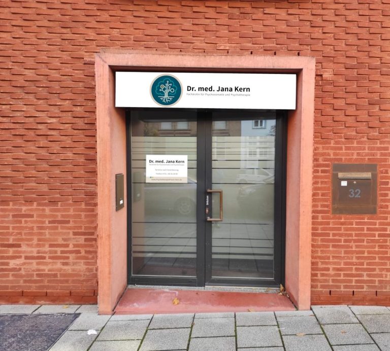 Die Praxis verfügt über einen separaten, ebenerdigen Eingang an der Hauptverkehrsstraße (Schützenstraße).